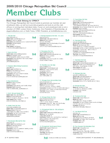 Meets at: Varies Each Month 14. Chicagoland Handicapped Skiers 22. Four Seasons Ski-Adventure Club