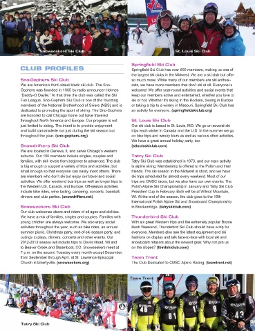 CLUB PROFILES Springfield Ski Club has over 600 members, making us one of