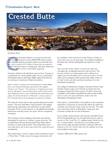 The kids ski school will see the greatest physical transfor- Snow Igloos, Crested Butte’s fun addition to the mountain