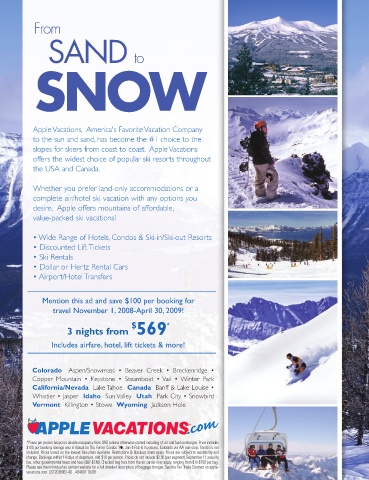 $100 per booking savings and is based on The Forest Condos 3å, Jan 4-Feb 8, Keystone, Colorado via AA non-stop. Transfers not