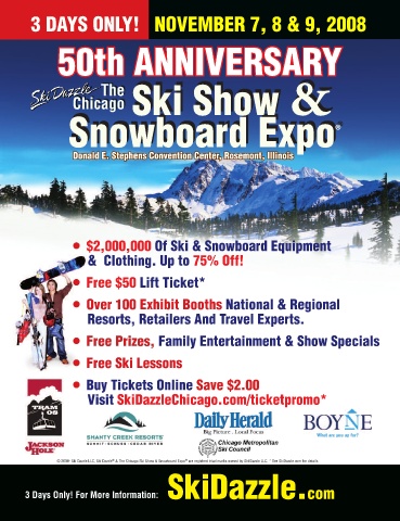 © 2008- Ski Dazzle LLC, Ski Dazzle & The Chicago Ski Show & Snowboard Expo are registerd triad marks owned by Ski Dazzle LLC. * See SkiDazzle.com for details.