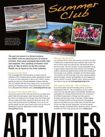 activities, from canoe and kayak trips to bike rides The Chicago Ski Pro Club was founded to promote the sport